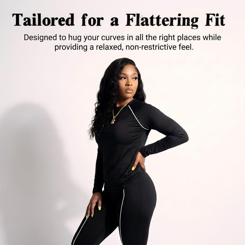 CONTRASTING SIDE STRIPES - Create a slimming, elongated silhouette while adding a modern, athletic touch. This thoughtful design detail visually lengthens your frame and enhances the overall sporty-chic aesthetic of the outfit.